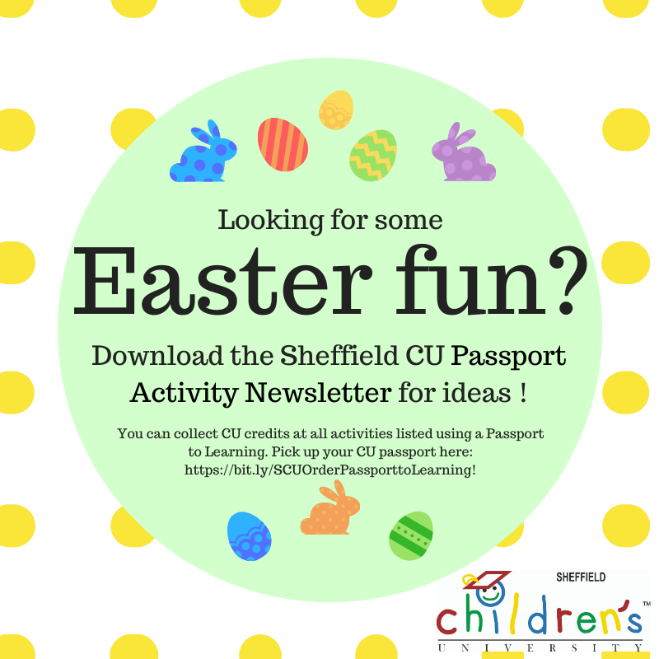 Please follow the link below to the CU Passport Activity Letter: http://bit.ly/SCUEasterPassportNewsletter Here you will find Sheffield CU home learning challenges, and some brand new Easter ones too! There is currently no time limit to taking part in these, and no order in which to do these so feel free to pick and chose as you like!